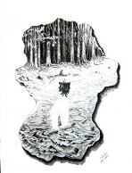 En las Ausencias, dibujo lo que está alrededor, pero la figura queda blanca, sin dibujar. A veces la "ausencia", soy yo misma, de niña, tomado el contorno de una foto de mi padre, como en el caso del tríptico de las sombrillas. En otros casos son figuras familiares femeninas.